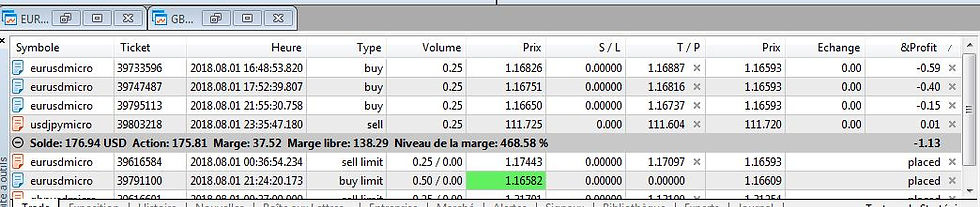 Synthèse : 3.78 dollars pour 20 trades soit un résultat de 2.18% de mon capital de début de journée